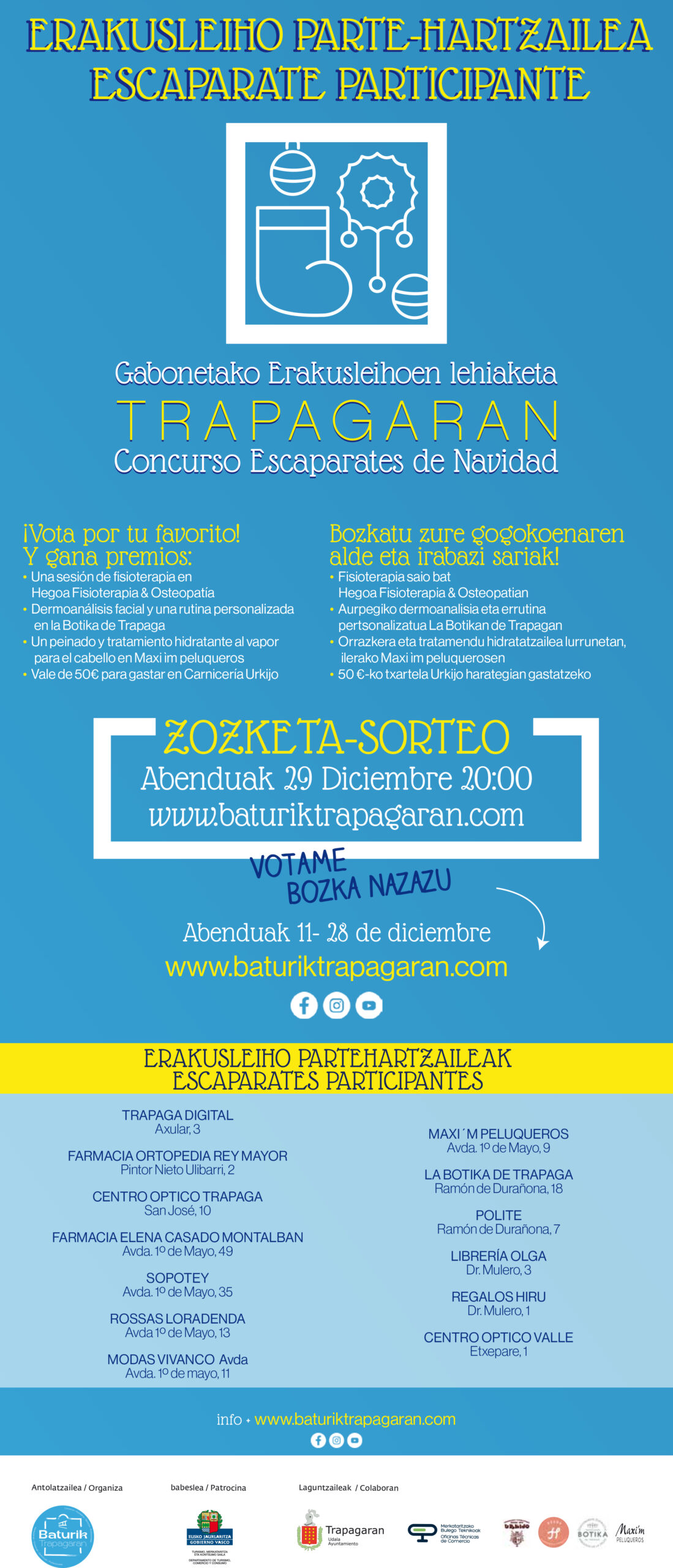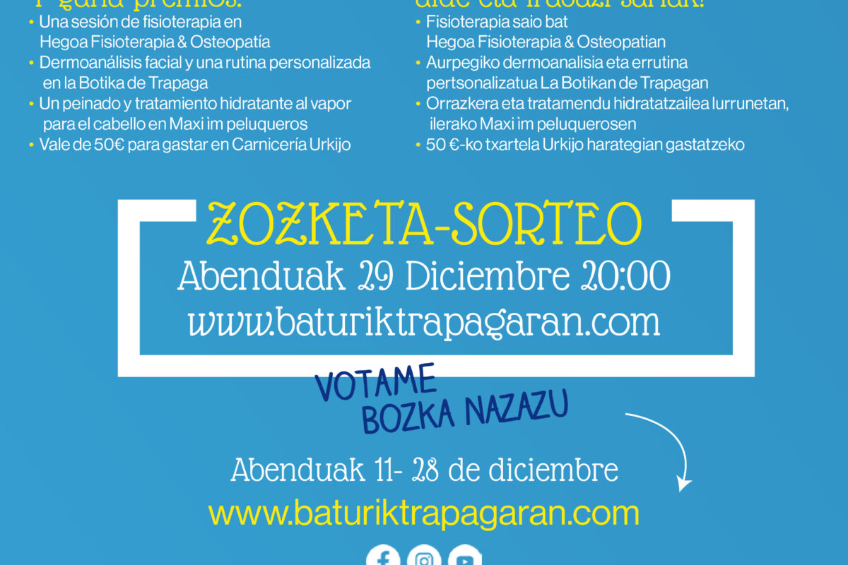 Baturik Trapagaran gara, eta oso gogoko dugu saritzea, elkarrekin lan egitea, ospatzea, laguntzea y gure herriarekin gozatzea. Hori dela eta, Trapagarangoak gara.